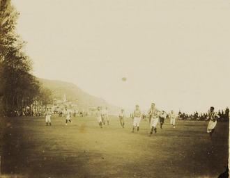 Keywords: Jogo de Futebol no Campo de D. Carlos com os tripulantes do iate Rhouma, 1899.jpg Jogo de Futebol no Campo de D Carlos com os tripulantes do iate Rhouma Souvenir of Madeira - Funchal V The Crew of yacht Rhouma No verso desta fotografia lê-se a data de 2 de Abril de 1899 Este jogo deve ser dos primeiros realizados na Praça Académica que veio a ser depois o Campo Almirante Reis João J Teixeira Photographo Amador Funchal 1899 Antigo arquivo do Club Sport Marítimo 36958 1899 João J Teixeira Photographo Amador PD-old-70 Files of Funchal uploaded by Darwinius Association football matches at Campo Almirante Reis 1899 in Funchal 1899 in association football |