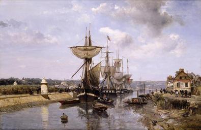 | Keywords: Johan Barthold Jongkind - Frégates, port de Harfleur.jpg Artwork Creator Johan Barthold Jongkind 1852-53 oil canvas cm 54 6 80 6 institution Sterling and Francine Clark Art Institute http //www clarkart edu/exhibitions/fifty/content/50favorites_details cfm id 24 Clark Art object history credit line Acquired by the Clark in memory of Eugene W Goodwillie Institute Trustee 1959 “74 1974 accession number 1974 4 339929 PD-old-100-1923 1881 Johan Barthold Jongkind Sterling and Francine Clark Art Institute Harfleur 1850s landscape paintings Landscape paintings of France 19th-century sailing ships in paintings |