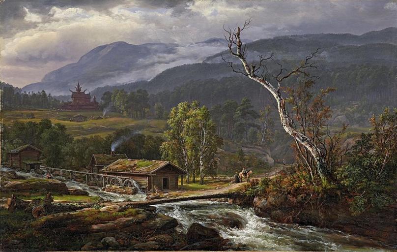 | Keywords: Johan Christian Claussen Dahl Landschaft bei Kaupanger mit Stabkirche.jpg Artwork Creator Johan Christian Claussen Dahl Nach Tagebucheinträgen Dahls aus dem Jahr 1847 wurde das Gemälde Landschaft bei Kaupanger mit Stabkirche bei ihm von dem Sammler Hans Konow aus Christiania bestellt wobei Dahl hervorhebt dass das Charakteristische der Region und ihrer Vegetation von ihm genau beobachtet wurde Da sich die vormals berühmte mittelalterliche Stabkirche in Kaupanger aber nur baulich verändert erhalten hatte wurde sie in der Darstellung des Gemäldes von Dahl durch die Ansicht der Stabkirche aus dem norwegischen Ort Vang ersetzt Diese Kirche in Vang sollte um 1840 einem Neubau weichen und abgerissen werden auf Betreiben Dahls wurde sie aber 1841 vom preußischen König Friedrich Wilhelm IV erworben abgebaut in Einzelteile zerlegt und im schlesischen Riesengebirge im Ort Krummhübel wiederaufgebaut <ref>http //www arcadja com/auctions/de/private/clausen_dahl_johan_christian/kunstwerken/357940/0/ ARCADJA auction results</ref> reflist 1847 oil on canvas cm 42 5 66 accession number object history Hans Konow Christiania - Einar Konow 1914 - Auktion Borg Oslo 24 4 1942 Lot 46 - Deutsche Privatsammlung seit 1956 - Auktionshaus šKunsthaus Lempertz ˜ 2010 - Grev Wedels Plass Auksjoner Kunsthandel 2011 credit line JDahl 1847 ~ lower right signature and date 1 http //www lempertz com/375+M50d4c9a3b8c html www lempertz com<br/>2 http //www gwpa no/nor/auctions/105 Grev Wedels Plass Auksjoner Kunsthandel http //images arcadja com/clausen_dahl_johan_christian-landschaft_bei_kaupangermit_stabkirch~MN193~10415_20100515_957_1901 jpg detail PD-old-100-1923 Landscape paintings of Norway by Johan Christian Clausen Dahl 1840s landscape paintings Paintings of watermills 1847 paintings Images from Kunsthaus Lempertz Kaupanger stave church 1840s paintings by Johan Christian Clausen Dahl Oil paintings by Johan Christian Clausen Dahl |