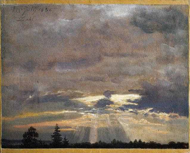 Keywords: Johan Christian Dahl - Cloud Study with Sunbeams - Google Art Project.jpg commons artist commons date commons medium commons dimensions commons institution Institution Nasjonalgalleriet commons location commons references commons object_history commons exhibition_history commons credit_line commons inscriptions commons notes commons accession_number commons source commons permission commons other_versions commons zoom core title title Cloud Study with Sunbeams core creator Johan Christian Dahl core date dateCreated 1836 core format cm 22 18 core type Paintings core relation http //www digitaltmuseum no/things/nm/NMK-B/NG M 00426-031 core rights The National Museum of Art Architecture and Design core format medium Oil paper cardboard art artist_birth_place Hordaland Bergen art artist_nationality Norwegian art artist_death_place Dredsen Tyskland art artist_date 1788/1857 c-0d5f498b customtext translated_title Uværshimmel med solstråler c-0d5f498b customtext technique Olje c-0d5f498b customtext latitude/longitude_artist_death_place 51 0504088 13 737262099999952 c-0d5f498b customtext latitude/longitude_artist_birth_place 60 39126279999999 5 32205440000007 google display_date 1836 google is_artproject TRUE google is_gigapixel FALSE google is_secured TRUE google street_view_asset/id XgECH-vAf3qvUw google street_view_level/id 4488346238719433535 google street_view_location 59 916374206542969 10 737690925598145 2 0899999141693115 Ia-Lp6Hm36V8O8F5wV39Uw google partner/id 000000000d5f498b google picasa_token ltousIDGKDOL8HMSk-0PUtl5V4g special url_id lgGfAiQdAUovyQ google partner/name The National Museum of Art Architecture and Design Norway special partner/name_no_lang The National Museum of Art Architecture and Design Norway PD-old-100-1923 1857 Paintings by Johan Christian Clausen Dahl in the Nasjonalgalleriet Google Art Project works by Johan Christian Clausen Dahl 1836 paintings in Norway 19th-century oil on paper paintings of landscapes in Norway 1830s paintings by Johan Christian Clausen Dahl Oil paintings by Johan Christian Clausen Dahl