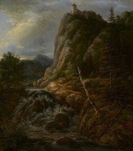 | Keywords: Johann Christian Clausen Dahl - Nordic Landscape with a Castle - 2013.20 - Minneapolis Institute of Arts.jpg water in foreground cascading over rocks; lake at left middle ground; couple with dog in front of log house at right middle ground with sheep grazing at right edge; castle on top of rocky peak top center 16 5/8 x 14 3/4 in 42 23 x 37 47 cm sight 22 5/16 x 20 1/4 x 2 1/2 in 56 67 x 51 44 x 6 35 cm outer frame 2013 20 https //api artsmia org/images/115871/6871/large jpg Q1700481 Oil on canvas Nordic Landscape with a Castle https //collections artsmia org/index php page detail id 115871 Q20891816 Paintings by Johan Christian Clausen Dahl |