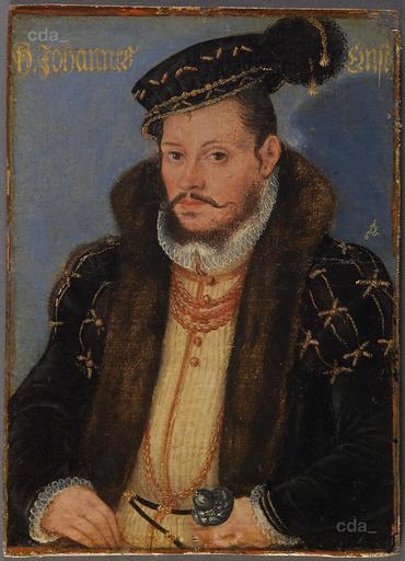 | Keywords: Johann Ernst, Herzog Coburg (AT KHM GG4802).jpg en Johann Ernst Duke of Koburg son of Johann the Steadfast died 1553 The portraits by Cranach the Younger have a uniform blue background and a cast-shadow to one side of the sitter As such they stand out from the other works in the series Furthermore all 48 images are painted on canvas and not paper They were later laminated onto wood and in isolated cases cardboard The very uniform appearance of the reverse of all the portraits belonging to the series suggests that they were attached to the auxiliary support after entering the Ambras collection Kunsthistorisches Museum Vienna 1578 1580 http //lucascranach org/AT_KHM_GG4802 Lucas Cranach the Younger other versions PD-100 Images uploaded by Fæ Portrait paintings by Lucas Cranach the Younger Paintings by Lucas Cranach the Younger with fur Male fur clothing in art Fur fashion in 1579 |