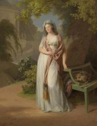 | Keywords: Johann Friedrich August Tischbein Luise von Brandenburg-Schwedt 1794.jpg Artwork Creator Johann Friedrich August Tischbein Bildnis der Fürstin w Luise von Brandenburg-Schwedt de 1750-1811 in ganzer Figur an einer Gartenbank stehend signiert und datiert unten rechts Fr Tischbein p 1794 1794 Oil on canvas cm 94 72 unknown http //www dorotheum com Dorotheum other versions PD-old-100 DEFAULTSORT 1794; Luise von Brandenburg-Schwedt Images from Dorotheum Johann Friedrich August Tischbein 18th-century portrait paintings location missing Luise von Brandenburg-Schwedt 1790s dresses 1794 oil on canvas paintings Portrait 1794 portrait paintings from Germany 18th-century oil portraits of standing women at full length 18th-century promenade portraits Benches in art Females with white dresses in art German promenade portraits Paintings with years of production artist Portraits with shawls |