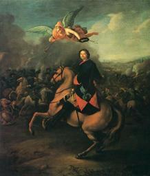 | Keywords: Johann Gottfried Tannauer 03.jpg Artwork Creator Johann Gottfried Tannauer Peter I at the w Battle of Poltava Пёт I в en w Peter the Great Peter I is portrayed in the uniform of Preobrazhensky Regiment with the insignia of Order of St Andrew ; winged Nike mythology Nike crowns Peter the Great with laurels <br>The painting had been dated to 1710s The today's more accurate dating 1998 the Catalogue of Russian Museum is 1724 or the beginning of 1725 w Пёт I ru изоб ажён в унифо ме П еоб аженский лейб-гва дии полк П еоб аженского полка ru с О ден Святого апостола Анд ея Пе возванного о деном Святого Анд ея Пе возванного ru ; к ылатая ика мифология Слава ru венчает Пет а Великого лав овым венком <br>Ранее по т ет дати овался 1710-ми годами Сов еменная уточнённая дати овка Каталог Русского музея 1998 г 1724 г или начало 1725 г or 1724 1725 Oil on canvas size cm 63 5 76 Russian Museum cite book Госуда ственный Русский музей Живопись XVIII век Каталог Санкт-Пете бу г Госуда ственный Русский музей Palace Editions 1998 159 160 437 object history Aleksey Lobanov-Rostovsky A B Lobanov-Rostovsky поступила в Русский музей в 1897 г из коллекции князя Лобанов-Ростовский Алексей Бо исович А Б Лобанова-Ростовского ru exhibition history accession number Ж-4901 http //www liveinternet ru/users/2010239/post102470497/ See below LangSwitch See also См также LangSwitch The reproduction of the painting<br>on the souvenir sheet Реп одукция ка тины<br>на почтовом блоке <gallery> Rus Stamp-300 let Poltavskaya bitva jpg LangSwitch The souvenir sheet of Russia 26 June 2009 Michel No 1556 Block122 Почтовый блок России 21 нояб я 2011 г Каталог ИТЦ « а ка» 1324 </gallery> PD-old-100 DEFAULTSORT Peter I of Russia Files uploaded by Shakko from various sources Johann Gottfried Tannauer Battle paintings in the Russian Museum 18th-century portraits in the Russian Museum Romanovs 1720s portrait paintings of Russia 18th-century oil equestrian portraits of men Battle of Poltava in art Equestrian portraits of Peter I of Russia Portrait paintings in 18th century military uniforms of Russia Portrait paintings with the battlefield Portraits half-turned Portraits of men wearing tricorne hats Portraits with angels Preobrazhensky Guard Regiment |