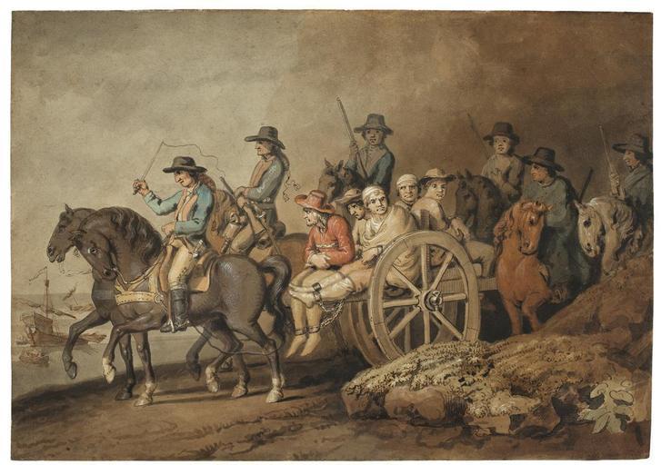 | Keywords: Johann Heinrich Wilhelm Tischbein Verbrecher die auf die Galeere verbracht werden c1800.jpg Artwork Creator Johann Heinrich Wilhelm Tischbein ~ 1800 watercolor pen pencil laid paper Aquarell und Feder in Schwarz und Braun weiß gehöht über Bleistift auf Bütten cm 33 6 48 accession number object history credit line exhibition history 1 http //www villa-grisebach de Villa Grisebach<br/>2 http //www arcadja com/auctions/de/private/tischbein_johann_heinrich_wil_/kunstwerken/69284/0/ Villa Grisebach Auktionen 29 Mai 2013 lot 108 via ARCADJA auction results PD-old-100 Images from Villa Grisebach Auktionen Johann Heinrich Wilhelm Tischbein Prisoners in paintings Horse-drawn carts in art |