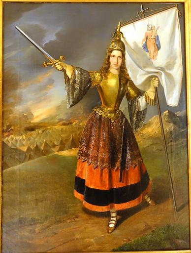 | Keywords: Johanna Christine Grosser as the Jungfrau von Orleans in the eponymous drama by Johann Christoph Friedrich Schiller, by A. Barthel, 1800-1850, oil on canvas - Braunschweigisches Landesmuseum - DSC04863.JPG en Exhibit in the Braunschweigisches Landesmuseum Braunschweig Germany This work is in the public domain because the artist died more than 100 years ago 2014-11-18 09 17 59 own Daderot other versions PD-old-100 cc-zero Paintings in the Braunschweigisches Landesmuseum Gustav Adolf Barthel Die Jungfrau von Orléans Friedrich Schiller |