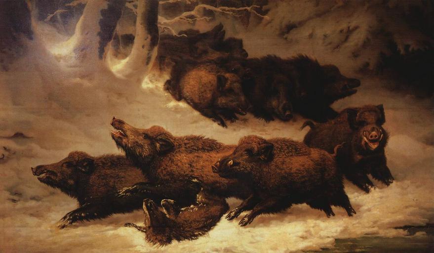 | Keywords: Johannes Deiker - Rotte Schwarzwild im Schnee.jpg Artwork de Rotte Schwarzwild im Schnee Oil Canvas cm 194 335 Wetzlar Hartmut Schmidt Johannes 1822 - 1895 und Carl Friedrich 1836 - 1892 Deiker Städtische Kunstsammlungen creator Johannes Deiker PD-old-100 Johannes Deiker |