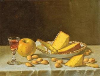 Keywords: John F. Francis - Still life with apple, cake and nuts.jpg John F Francis 1808-1886 1858 oil on canvas cm 38 1 48 26 object history credit line signed J F Francis and dated Pt 1858 lower right accession number http //www arcadja com/auctions/en/private/francis_john_f_/artworks/10249/0/ Shannon's via ARCADJA auction results PD-old-100-1923 1886 John F Francis Still life paintings of fruits 1850s still-life paintings 1858 paintings |