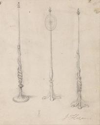 Keywords: John Flaxman - Study of Three Lampstands - Google Art Project.jpg Inscribed in black ink upper left F Inscription _Marks Watermark Unidentified portion of bell Inscription _Signed_and_Dated Signed in black ink lower right J Flaxman Not on View Graphite on medium slightly textured cream laid paper soldiers snakes men jousts armors candlestands lighting devices candles hats spears weapons genre subject still life special url_id 6QHXNB1MJ_cVuQ PD-old-100-1923 1826 Google Art Project works by John Flaxman Drawings Illustrations of lighting devices interior lighting Candlestands lighting devices John Flaxman |