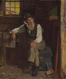 | Keywords: John George Brown - Living in the Past.jpg between 1896 1897 Oil on canvas cm 76 2 63 5 object history provenance Oren Cheney Sandborne Winchester Massachusetts; Rena Armstrong Sandborne Winchester Massachusetts; Private collection; Christie's New York 3 December 1982 lot 50; Private collection; Mr and Mrs Eddy Nicholson; Christie's New York 27 January 1995 lot 828; Private collection; Private collection Maryland; Estate of the above credit line signed and inscribed 'copyright/J G Brown N A ' lower left accession number Christie's online 5599587 PD-old-auto-1923 1913 John George Brown 1896 portrait paintings 1897 oil on canvas paintings 19th-century oil paintings of sitting men at full length Paintings of men wearing hats |
