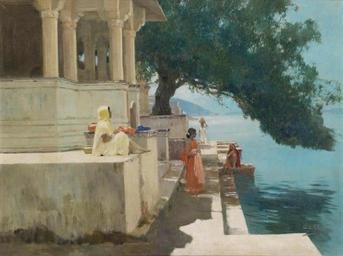 Keywords: John Gleich - On the banks of the Ganges.jpg > 1927 oil canvas cm 60 80 accession number object history credit line http //www arcadja com/auctions/en/private/gleich_john/artworks/50795/0/ Palais Dorotheum via ARCADJA auction results PD-old-auto-1923 1927 Orientalist paintings by John Gleich Ganges River in art Landscape paintings of India Images from Dorotheum |