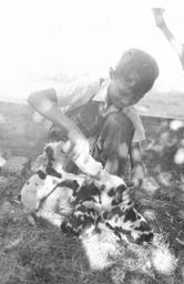 | Keywords: mennonite community children animals pets mennonitecommunitychildrenanimalspets pigs john lauber johnlauber shickley nebraska blackandwhite monochrome outdoor black and white Caption: July 5, 1948. Shickley, Nebraska. John Lauber, age 9, feeding the pigs which he has for a missionary project. Citation: Mennonite Community Photograph Collection, 1947-1953. Children With Pets. HM4-134 Box 2 Photo 227-3. Mennonite Church USA Archives - Goshen. Goshen, Indiana. Caption: July 5, 1948. Shickley, Nebraska. John Lauber, age 9, feeding the pigs which he has for a missionary project. Citation: Mennonite Community Photograph Collection, 1947-1953. Children With Pets. HM4-134 Box 2 Photo 227-3. Mennonite Church USA Archives - Goshen. Goshen, Indiana. |