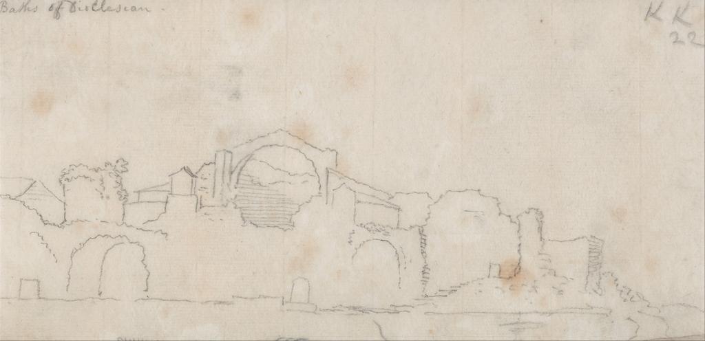 | Keywords: John Robert Cozens - Baths of Dioclesian - Google Art Project.jpg Inscribed in graphite upper left Baths of Dioclesian ; in graphite upper right KK / 22 ; in graphite lower left 38 Inscription _Signed_and_Dated not signed Not on View Graphite on thin slightly textured white laid paper architectural subject Grand Tour arches trees landscape special url_id FgGCZKiPKVrzlA PD-old-100-1923 1799 Rome in art by John Robert Cozens Google Art Project works by John Robert Cozens Baths of Diocletian Rome in art |