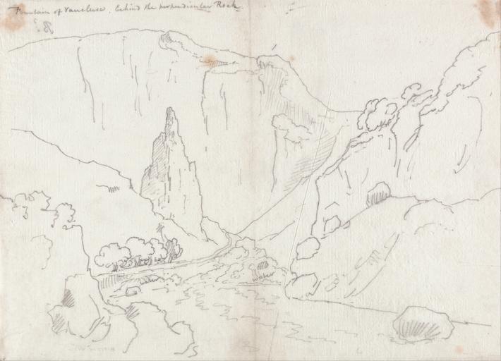 Keywords: John Robert Cozens - Fountain of Vaucluse, behind the Perpendicular Rock - Google Art Project.jpg Inscribed in graphite upper left Fountain of Vaucluse behind the perpendicular Rock ; in graphite center left water ; in graphite lower center water ; in graphite lower center 25 ; inscribed on back in graphite upper right B Inscription _Signed_and_Dated not signed Not on View Graphite on thin slightly textured white laid paper Grand Tour rocks trees fountains landscape special url_id FgGi109tpwFxeA PD-old-100-1923 1799 France in art by John Robert Cozens Google Art Project works by John Robert Cozens |