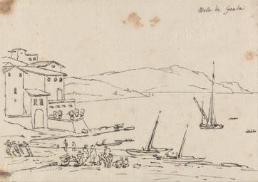 | Keywords: John Robert Cozens - Mola di Gaeta - Google Art Project.jpg Inscribed in pen and black ink upper right Mola de Gaeta ; in graphite lower left 200 Inscription _Signed_and_Dated not signed Not on View Pen and black ink on thin slightly textured cream laid paper sea hills buildings landscape boats special url_id FQFZE-nqjU9pww PD-old-100-1923 1799 Lazio in art by John Robert Cozens Google Art Project works by John Robert Cozens | ||||