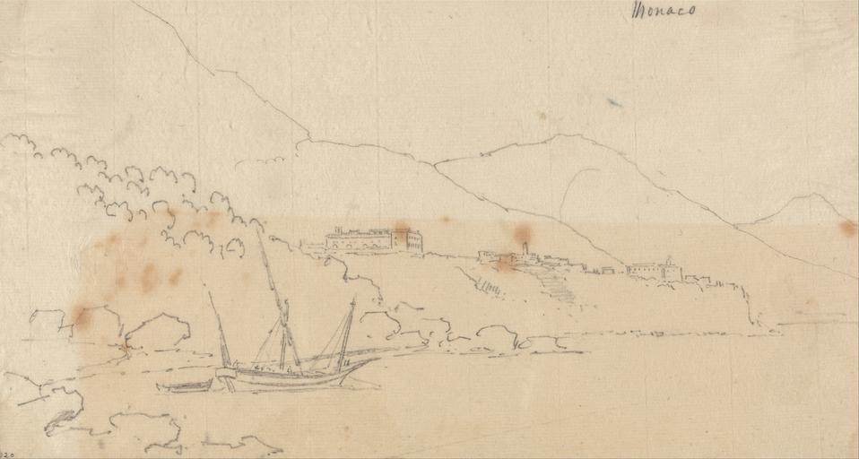 | Keywords: John Robert Cozens - Monaco - Google Art Project.jpg Inscribed in graphite upper right Monaco ; in graphite lower left 120 Inscription _Signed_and_Dated not signed Not on View Graphite on thin slightly textured cream laid paper cliffs trees buildings ships landscape special url_id ZwGRItQ4Ztigbw PD-old-100-1923 1799 John Robert Cozens Google Art Project works by John Robert Cozens Historical images of Monaco | ||||