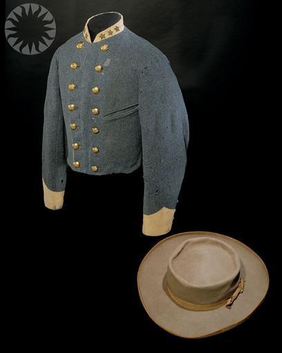 Keywords: price of freedom priceoffreedom military history militaryhistory uniforms smithsonian probably public domain probablypublicdomain indoor SI Neg. 2004-23472. Date: na....Double breasted gray wool shell jacket with buff facings. Adorned with brass muffin buttons. Gray felt slouch hat trimmed in grograin ribbon. The style would become known as a Mosby style hat.This slouch hat was worn by John Mosby when he was wounded by federal cavalry in December 1864. According to Virgil Carrington Jones, author of Grey Ghosts and Rebel Raiders, this hat was left behind in a house in Rector's Cross Roads, Virginia. Forty years later, Sarah Halstead, the daughter of a 13th New York Cavalry officer returned the hat to Mosby. A few days after it arrived, Mosby went to the White House and presented the hat to the President...Credit: Hugh Talman (Smithsonian Institution) SI Neg. 2004-23472. Date: na....Double breasted gray wool shell jacket with buff facings. Adorned with brass muffin buttons. Gray felt slouch hat trimmed in grograin ribbon. The style would become known as a Mosby style hat.This slouch hat was worn by John Mosby when he was wounded by federal cavalry in December 1864. According to Virgil Carrington Jones, author of Grey Ghosts and Rebel Raiders, this hat was left behind in a house in Rector's Cross Roads, Virginia. Forty years later, Sarah Halstead, the daughter of a 13th New York Cavalry officer returned the hat to Mosby. A few days after it arrived, Mosby went to the White House and presented the hat to the President...Credit: Hugh Talman (Smithsonian Institution) |