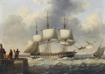 Keywords: John Ward of Hull - A frigate shortening sail as she runs into port.jpg oil panel cm 22 8 30 5 object history credit line signed 'J Ward' lower left accession number http //www bonhams com/cgi-bin/public sh/WService wslive_pub/pubweb/publicSite r screen lotdetailsNoFlash iSaleNo 14823 iSaleItemNo 3461811 bonhams com PD-Art John Ward 19th-century sailing ships in paintings Images from Bonhams 19th-century paintings location missing