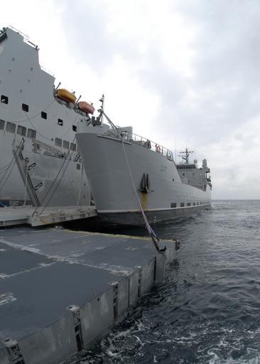 | Keywords: Joint Logistics Over the Shore Exercise DVIDS180190.jpg en Logistic Support Vessel General Frank S Besson conducts operations alongside Military Sealift Command Large Medium-speed Roll-on/Roll-off ship USNS Seay in support of Joint Logistics Over-the-Shore exercises JLOTS is a joint operation that consists of loading /unloading of ships without fixed port facilities in friendly or non-defended territory 2009-06-16 Petty Officer 2nd Class John Stratton https //www dvidshub net/image/180190 090616-N-+++++-056 2009-06-16 13 45 CAMP LEJEUNE NC US PD-USGov-Military-Navy Marine Corps Base Camp Lejeune Images from DoD uploaded by Fæ |