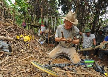 | Keywords: Joint POW-MIA Accounting Command 120825-N-HG891-040.jpg en Marine Corps Sgt Aaron Budd sweeps the excavation area looking for metal hits while conducting recovery operations at a remote site in Ha Tinh Vietnam Budd was the explosive ordnance disposal technician for a 12-person recovery team deployed from Joint Base Pearl Harbor-Hickam Hawaii alongside seven other teams from the Joint POW/MIA Accounting Command The teams searched for information on more than 65 Americans lost during the Vietnam War The Joint POW/MIA Accounting Command conducts global search recovery and laboratory operations to identify unaccounted-for Americans from past conflicts in order to support the Department of Defense's personnel accounting efforts 2012-08-25 Petty Officer 2nd Class Nina Hughes https //www dvidshub net/image/671840 120825-N-HG891-040 2012-09-25 19 30 HA TINH VN PD-USGov-Military-Navy Joint POW/MIA Accounting Command Images from DoD uploaded by Fæ |