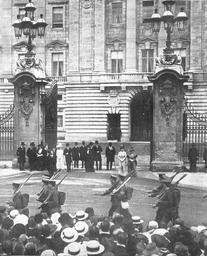 Keywords: Jorge V y los granaderos.png Jorge V del Reino Unido y su familia contemplan el paso de los granaderos de la guardia en la puerta del Palacio de Buckingham 1914-08 Mundo Gráfico número 148 de 26 de agosto de 1914 página 20 author other versions Custom license marker 2015 05 16 PD-old-80 Uploaded with UploadWizard George V of the United Kingdom Buckingham Palace Mundo Gráfico military |