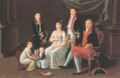 Keywords: José de Iturrigaray family portrait.jpg José de Iturrigaray viceroy of New Spain José de Iturrigaray vice-roi de Nouvelle-Espagne 1805 Oil on canvas Museo Nacional de Historia Mexico - Chapultepec Castle http //1 bp blogspot com/_LFGrLYA2dFc/TM9DKIjVBXI/AAAAAAAAB7A/Yx6K6WE1wno/s1600/criollos3 jpg http //www mnh inah gob mx/recorridosP/salasHistoria/sala05/S5_iturrigaray html other versions <gallery>File Iturrigaray-family-1805 jpg File Mexico criollo portada jpg</gallery> PD-old-100 Uploaded with UploadWizard José de Iturrigaray 19th-century family portraits 19th-century portrait paintings from Mexico 1805 portrait paintings Chapultepec Castle 19th-century unidentified painters 1805 oil on canvas paintings Group portraits with 6 persons |