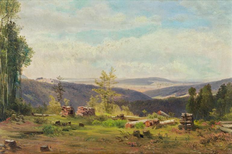 Keywords: Josef Holzer Waldlichtung.jpg Waldlichtung oil on canvas 27 x 40 cm JH monogram http //www imkinsky com/ im Kinsky by 1876 creator Joseph Holzer PD-old-100 Images from im Kinsky Kunstauktionen Josef Holzer Forestry in art Wienerwald