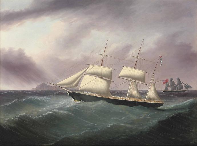 | Keywords: Joseph Heard - The barque Humphrey Nelson.jpg Artwork Joseph Heard 1799-1859 en The barque Humphrey Nelson flying her recognition flags as she passes a three-masted merchantman off a mid-ocean The wooden barque Humphrey Nelson was built at Dundee in 1855 for Nelson Co of Maryport Registered at 476 tons and measuring 134 feet in length with a 25 foot beam she began her career sailing out of Liverpool under the command of her owner Captain P Nelson Within ten years however she was trading out of London to China under Captain Chellew but disappears from record in the early 1870s 1857 oil canvas cm 63 5 83 8 object history credit line Jo Heard 1857 ~ lower left signature and date accession number 1 http //www arcadja com/auctions/en/heard_joseph/artist/12999/ Christie's London May 13 2009 lot 803 via ARCADJA auction results<br/>2 Christie's online 5688791 8918 113 London Jun 12 2013 PD-old-auto-1923 1859 Joseph Heard Humphrey Nelson ship 1855 19th-century sailing ships in paintings 19th-century paintings location missing Paintings with signatures lower left Paintings with years of production artist 1857 paintings |