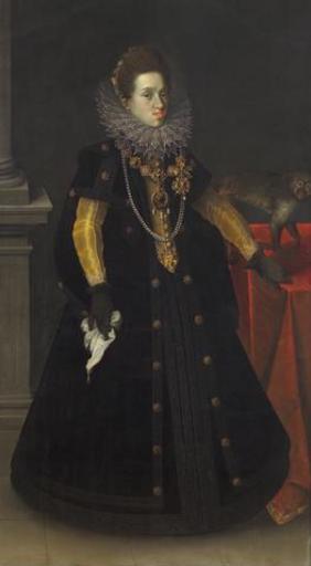 | Keywords: Joseph Heintz d. Ä. 004.jpg Artwork Creator Joseph Heintz d Ä Portrait of w Maria Anna of Bavaria 1574 “1616 Archduchess of Austria 1604 Oil on canvas 1970 ursprüngliche Format wiederhergestellt 191 5 x 110 cm Rahmenmaße 208 x 126 8 x 9 cm Institution Kunsthistorisches Museum accession number object history credit line Inv -Nr GG_9452<br/> Provenienz Ursprünglich wahrscheinlich aus der Grazer Burg; Im 19 Jahrhundert auf Schloss Laxenburg;<br/> Abgebildete Person Erzherzogin Konstanze Tochter von Erzh Karl II von Habsburg Österreich http //bilddatenbank khm at/viewArtefact id 2377 PD-old-100 DEFAULTSORT 1604; Constance of Austria by Heintz Paintings by Joseph Heintz the Elder in the Kunsthistorisches Museum Constance of Austria 1600s dresses 1604 oil on canvas paintings Portrait 1604 portrait paintings 17th-century oil portraits of standing women at full length 17th-century portrait paintings in the Kunsthistorisches Museum 17th-century portrait paintings with animals Columns in portrait paintings Females with black dresses in art Females with necklaces in art Portrait paintings of standing women with hands resting on tables Portrait paintings of women holding handkerchiefs Portrait paintings of women with animals Portrait paintings with monkeys Ruffs in art female Spanish saya court dress |