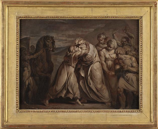 | Keywords: Joseph meets his father Jacob in the desert (Jean-Antoine Julien de Parme) - Nationalmuseum - 132587.tif Jean-Antoine Julien de Parme en Joseph meets his father Jacob in the desert Julien de Parme was of Swiss origin but worked in Italy and France In this work he has used oil paint to try to emulate the plasticity of a sculptural relief The painting is a typical example of the deep impact that antique sculpture had on artists in the late 18th century This painting belonged to the Swedish sculptor Johan Tobias Sergel who lived in Rome in the 1770s at the same time as Julien de Parme Julien de Parme var av schweiziskt ursprung men verksam i Italien och Frankrike I det här verket har han med oljemålningen som medium försökt efterlikna plasticiteten i en skulpturrelief Målningen är ett tydligt exempel på den antika skulpturkonstens stora betydelse för konstnärerna under slutet av 1700-talet Målningen har tillhört den svenske skulptören Johan Tobias Sergel som på 1770-talet vistades i Rom samtidigt som Julien de Parme header Julien de Parme was of Swiss origin but worked in Italy and France In this work he has used oil paint to try to emulate the plasticity of a sculptural relief The painting is a typical example of the deep impact that antique sculpture had on artists in the late 18th century This painting belonged to the Swedish sculptor Johan Tobias Sergel who lived in Rome in the 1770s at the same time as Julien de Parme Julien de Parme var av schweiziskt ursprung men verksam i Italien och Frankrike I det här verket har han med oljemålningen som medium försökt efterlikna plasticiteten i en skulpturrelief Målningen är ett tydligt exempel på den antika skulpturkonstens stora betydelse för konstnärerna under slutet av 1700-talet Målningen har tillhört den svenske skulptören Johan Tobias Sergel som på 1770-talet vistades i Rom samtidigt som Julien de Parme date Oil on canvas Olja på duk Size cm 40 3 20 4 Framed Size cm 51 40 3 Institution Nationalmuseum Stockholm Påskrift Herr Särgell i rödkrita a tergo på ramen Påskrift Särgell i blyerts a tergo på ramen Påklistrad lapp B 6 samt fragment av en ytterligare papperslapp med påskrift oläsl accession number 132587 NM 7073 place of creation Per-Åke Persson / Nationalmuseum Nationalmuseum Stockholm cooperation project Licensed-PD-Art PD-old-auto PD-Nationalmuseum_Stockholm 1799 Media contributed by Nationalmuseum Stockholm 2016-10 Paintings in the Nationalmuseum Stockholm Julien de Parme |