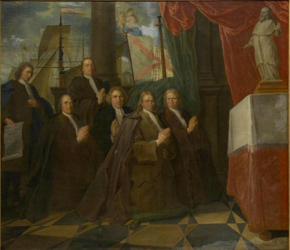 | View Original: | Joseph_van_den_Kerckhove_-_Six_members_of_the_Bruges_Guild_of_Seamen_before_their_Patron_Saint_Clement.jpg (742x640) | |||