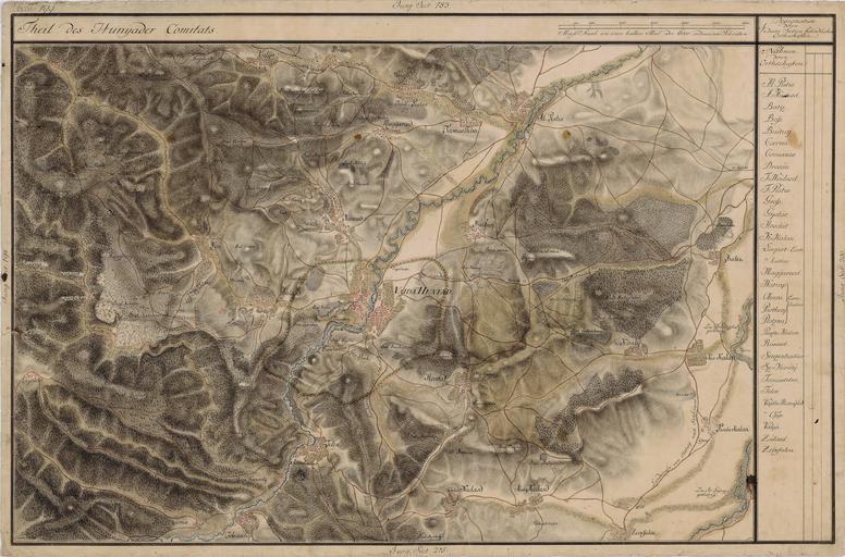 | Keywords: Josephinische Landaufnahme pg199.jpg wikitable style margin 1em auto 1em auto width 80 Name shown on the map<br>Nume din hartă Administrative unit<br>Unitate administrativă Romanian name<br>Numele românesc Hungarian name<br>Numele unguresc German name<br>Numele german Country today<br>Ţara de astăzi - Gross Hunyad megye<br> ro Comitatul Hunedoara Groş Grós Gross Romania - Válya Hunyad megye Valea Nandrului Nándorválya Weissenthal Romania - Drosan Hunyad megye Josani Zsoszány Susendorf Romania - Magyarosd Hunyad megye Mănerău Magyarosd Nussdorf Romania - Felsõ Pestes Hunyad megye Pestişu Mic Felsõpestes Romania - Tamas Telke Hunyad megye Peştişu Mare Tamástelke Alpestes Unter-Peschtendorf Romania - Al Pestes Hunyad megye Peştişu Mare Alpestes Unter-Peschtendorf Romania - Batiz Hunyad megye Batiz Batiz Batizfalva Sajtostelek Batiz Batiss Romania - Buiturj Hunyad megye Buituri Hunedoara Bujtur Vajdahunyad Romania - Rakosd Hunyad megye Răcăştia Rákosd Romania - Bos Hunyad megye Boş Bós Bózs Boz Romania - Ohaka Hunyad megye Boş Bós része Romania - Nacrap Hunyad megye Romania - Limpert Hunyad megye Govăşdia Limpert Ólimpert Felsőlimpert Alsólimpert Ober Limpert Unter Limpert Romania - Gyalár Hunyad megye Ghelari Gyalár Romania - Partschai Hunyad megye Romania - Zalasd Hunyad megye Zlaşti Zalasd Vajdahunyad Romania - Vaida Hunyad Hunyad megye Hunedoara Vajdahunyad Hunyad Eisenmarkt Eisenstadt Hunyad Thurndorf Romania - Hosdat Hunyad megye Hăşdat Hosdát Hochstatt Hochstätten Romania - Sz Kiraly Hunyad megye Sâncrai Szentkirály Romania - Kis Kalan Hunyad megye Călanu Mic Kiskalán Kalán Kiskaján Kajánel Klein-Klandorf Löffeldorf Romania - Puszta Kalan Hunyad megye Călan Pusztakalán Klandorf Kalan Romania - Boldogfalva Zu Boldogfal gehörig Hunyad megye Sântămăria de Piatră Kőboldogfalva Boldogasszonyfalva Mariendorf Liebfrauendorf Romania - Sz Gyorgy Zu Sz Gyorgy gehörig Hunyad megye Streisângeorgiu Sztrigyszentgyörgy Szentgyörgy Romania - Also Nadasd Hunyad megye Nădăştia de Jos Alsónádasd Alsónádas Unter-Rohrbach Romania - Telek Hunyad megye Teliucu Inferior Alsótelek Telek Untertelek Eisenhammer Romania - Ploczka Hunyad megye Ploscăbaia Gyalár Ploszkabánya Romania - Cserna Hunyad megye Cerna Cerna-Păroasa Csolnakos Romania - Csolnakos Hunyad megye Cinciş-Cerna Csolnakos Romania - Grand Duchy of Transylvania 1769-1773 Josephinische Landaufnahme pg 199 Harta Iosefină a Transilvaniei 1769-1773 Josephinische Landaufnahme pg 199 Österreichisches Staatsarchiv Kriegsarchiv B IX 715 Original-Aufnahmskarte des Grossfürtenthums Siebenbürgen Geometrisch aufgenommen und bearbeitet in den Jahren 1769 bis 1773 unter der Direction des Obristen von Fabris theils durch Officiere des grossen Feld-Generalstabes theils auch von verschiedenen aus dem in Siebenbürgen bequartierten Regimentern zu diesem Geschäfte beigezogenen Individuen Historische Militärkarte der österreichisch-ungarischen Monarchie 1769-1773 PD-old-100 Clickable Map of the Grand Duchy of Transylvania GrandDuchyOfTransylvania 1769-73 Josephinische Landaufnahme Josani Hunedoara |