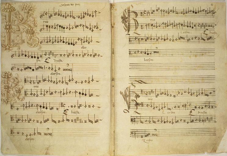 | Keywords: Josquin Missa BV Kyrie.jpg Early 16th century manuscript of Missa de Beata Virgine by Josquin des Prez; 2D representation en wikipedia From http //www ibiblio org/expo/vatican exhibit; also available at U S Library of Congress Manuscript is Rome Biblioteca Apostolica Vaticana MS Cappella Sistina 45 folios 1v-2r 2007-03-31 Antandrus wikipedia en PD-old original upload log page en wikipedia Josquin_Missa_BV_Kyrie jpg 2007-03-31 19 19 Antandrus 1345×925×8 161134 bytes <nowiki>early 16th century manuscript of Missa de Beate Virgine by Josquin des Prez; PD-art; 2D representation</nowiki> Josquin des Prez Musical manuscripts Kyrie Facsimiles of mensural notation Cappella Sistina manuscripts |