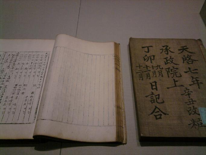 | Keywords: Journal of the Royal Secretariat in museum.jpg en Journal of the Royal Secretariat displayed in Seoul National University Kyujanggak Institute for Koreanology Studies 2013-08-09 12 04 36 own Salamander724 Uploaded with UploadWizard Books of the history of Korea |