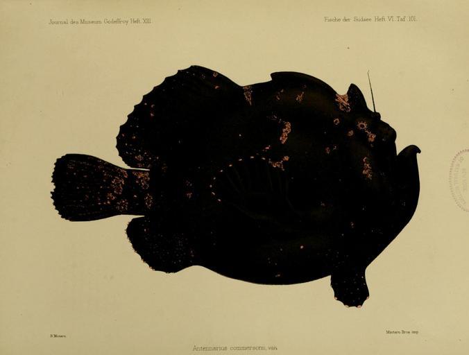 Keywords: JournalMuseumGodoeffroyHeftXIIIIFischederSudseeHeft6Taf101.jpg Antennarius senegalensis http //www biodiversitylibrary org/ of plate unknown 1886-1910 PD-old Fische der Südsee Journal Museum Godeffroy Antennarius senegalensis Fowlerichthys senegalensis |