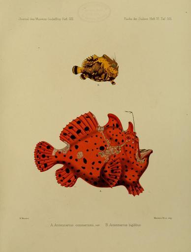 Keywords: JournalMuseumGodoeffroyHeftXIIIIFischederSudseeHeft6Taf105.jpg en As file http //www biodiversitylibrary org/ of plate unknown 1886-1910 Antennarius commerson1 jpg Antennatus tuberosus jpg PD-old Fische der Südsee Journal Museum Godeffroy