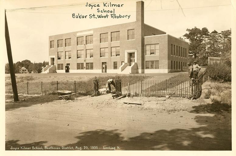 | Keywords: Joyce Kilmer School - 0403002097b - City of Boston Archives.jpg Joyce Kilmer School Exterior 1935-08-20 Institution City of Boston Archives City of Boston Archives and Records Management Division credit line exhibition history depicted place Baker St West Roxbury Guide to the Photographs of School Buildings City of Boston Archives The image can also be found on Flickr http //www flickr com/photos/cityofbostonarchives/5589091095 here or http //www flickr com/photos/cityofbostonarchives/5589681752 here accession number 0403 002 Box 2 Folder 5 City of Boston Archives partnership City of Boston Archives license 0403 002 Historical photographs of public schools in Boston Kilmer Joyce School Joyce Kilmer School Boston Massachusetts Photographs by Herbert E Glasier |