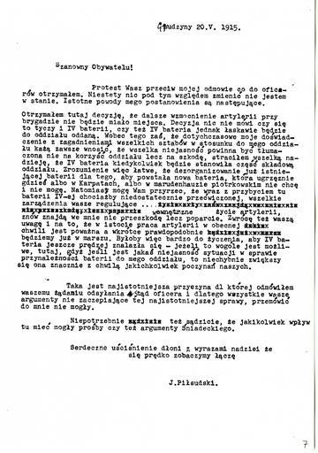 Keywords: Józef Piłsudski - List Józefa Piłsudskiego dotyczący wzmocnienia artylerią I Brygady Legionów. - 701-001-024-007.jpg Piłsudski Institute document pl List Józefa Piłsudskiego dotyczący wzmocnienia artylerią I Brygady Legionów 1915-05-20 pl List atorstwa Józefa Piłsudskiego do nieznanego oficera dotyczy wzmocnienia oddziałów I Brygady Legionów artlerią pl Piotrkowskie; protest; Artyleria pl Letter Śniadecki Kuropaty <br/> Budzyny 701/1/24/7 701 180/1653 1712 1 PD-old-auto-unpublished 1935 yes Collections of Józef Piłsudski Institute of America from 1915 Józef Piłsudski in 1915 Letters by Józef Piłsudski |