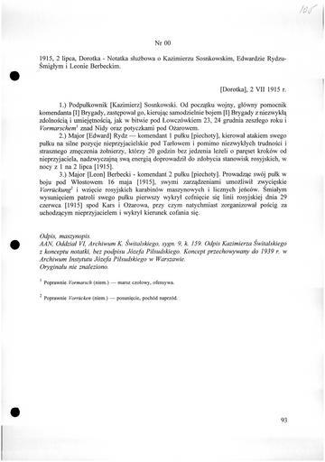 Keywords: Józef Piłsudski - Notatki służbowe o oficerach - 701-001-100-105.jpg Piłsudski Institute document pl Notatki służbowe o oficerach 1915-07-02 pl Noty służbowe o oficerach pl Legiony; Józef Piłsudski - listy pl Other Sosnkowski Kazimierz <br/> Rydz-Śmigły Edward <br/> Berbecki Leon Dorotka <br/> Łowczówek <br/> Ożarów <br/> Tarłów <br/> Włostow <br/> Ożarów 1914-12-23 <br/> 1915-07-01 <br/> 1915-05-16 <br/> 1915-06-29 701/1/100/105 701 180/3110 3567 Archiwum Józefa Piłsudskiego 1 PD-old-auto-unpublished 1935 yes Collections of Józef Piłsudski Institute of America from 1915 Józef Piłsudski in 1915 Writings of Józef Piłsudski Military documents of Second Polish Republic |