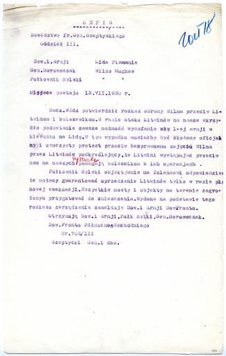 Keywords: Józef Piłsudski - Rozkaz Naczelnego Wodza w sprawie obrony Wilna - 701-001-074-130.jpg Piłsudski Institute document pl Rozkaz Naczelnego Wodza w sprawie obrony Wilna 1920-07-13 pl Potwierdzenie rozkazu Naczelnego Wodza o obronie Wilna pl Wilno; Wojna polsko-bolszewicka pl Other Tolens <br/> Rylski <br/> Boruszczak <br/> Szeptycki Wilno <br/> Lida 701/1/74/130 701 180/2447 3138 Archiwum Józefa Piłsudskiego 1 PD-old-auto-unpublished 1935 yes Collections of Józef Piłsudski Institute of America from 1920 Józef Piłsudski in 1920 Polish-Soviet War Writings of Józef Piłsudski Military documents of Second Polish Republic |