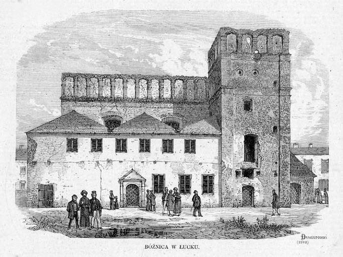 Keywords: Луцька божниця.jpeg uk Велика синагога Луцьк Kłosy 377 19 09 1872 S 189 Piotr Dyamentowski 1872 150px Great Synagogue in Lutsk Historical images of Lutsk PD-Art