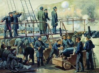| Keywords: Синопский бой кившенко.jpeg ru Палуба линейного ко абля «Импе ат ица а ия» во в емя боя п и Синопе 1853 год Худ Кившенко Алексей Данилович 1880 Цент альный военно-мо ской музей Санкт-Пете бу г 1888 http //history sgu ru/ wid 793 creator Aleksey Kivshenko PD-old-100 Uploaded with UploadWizard Pavel Nakhimov Paintings of Battle of Sinop Aleksey Kivshenko |