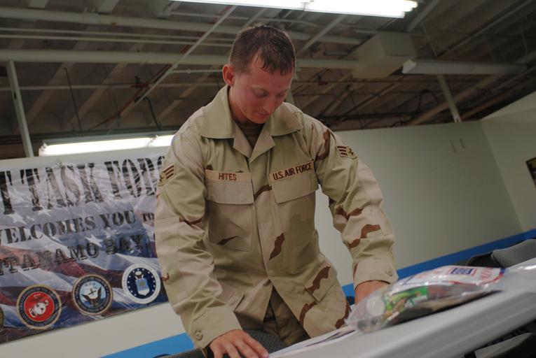 | Keywords: JPRC at Work DVIDS85148.jpg en Air Force Senior Airman Mike Hites Joint Personnel Reception Center Joint Task Force Guantanamo arranges a welcome-aboard package for incoming JTF personnel in the Guantanamo Bay Naval Air Station Air Mobility Command Terminal on April 15 JPRC handles in-processing and out-processing for all JTF personnel JTF Guantanamo conducts safe and humane care and custody of detained enemy combatants The JTF conducts interrogation operations to collect strategic intelligence in support of the global war on terror and supports law enforcement and war crimes investigations JTF Guantanamo is committed to the safety and security of American service members and civilians working inside its detention facilities 2008-04-15 Petty Officer 2nd Class Nathaniel Moger https //www dvidshub net/image/85148 080415-N-+++++-005 2008-04-23 13 17 GUANTANAMO BAY CU PD-USGov-Military-Navy Joint Task Force Guantanamo Guantanamo Bay Images from DoD uploaded by Fæ |