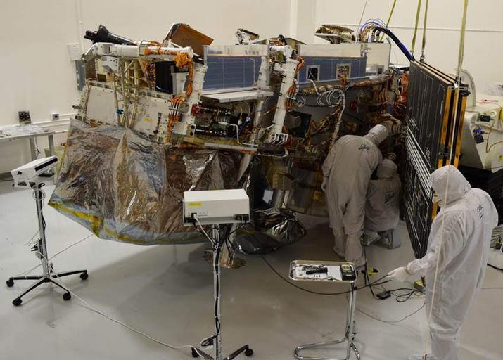 | Keywords: jpss- 1 jpss1 nesdis noaa satellites noaasatellites satellite December 9, 2015 The solar panel array on NOAA’s polar-orbiting satellite JPSS-1 spacecraft successfully completed its fit check at Ball Aerospace and Technologies Corp. The solar array is folded up at launch and deploys on orbit, resembling a giant black wing and generating more than 2775 watts of power for NOAA’s JPSS-1 satellite. Photovoltaic cells in the solar array derive electricity from sunlight and convert solar radiation into direct current electricity. The JPSS-1 photovoltaics in the solar panel array will power the entire satellite including all of the instruments, computers, data processors, and telecommunications equipment. Credit: Ball Aerospace and Technologies December 9, 2015 The solar panel array on NOAA’s polar-orbiting satellite JPSS-1 spacecraft successfully completed its fit check at Ball Aerospace and Technologies Corp. The solar array is folded up at launch and deploys on orbit, resembling a giant black wing and generating more than 2775 watts of power for NOAA’s JPSS-1 satellite. Photovoltaic cells in the solar array derive electricity from sunlight and convert solar radiation into direct current electricity. The JPSS-1 photovoltaics in the solar panel array will power the entire satellite including all of the instruments, computers, data processors, and telecommunications equipment. Credit: Ball Aerospace and Technologies |