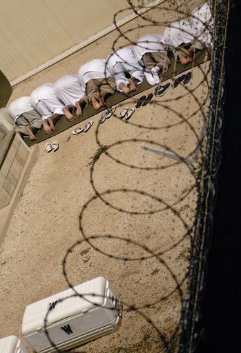 | Keywords: JTF Guantanamo Detainees Bow During Morning Prayer DVIDS225358.jpg en A group of detainees at Joint Task Force Guantanamo bow and touch the forehead to the ground as they observe morning prayer before sunrise inside Camp Delta Oct 28 Detainees at the JTF are afforded the opportunity to pray five times each day and are provided prayer rugs and copies of the Quran 2009-10-28 Petty Officer 1st Class Marcos Hernandez https //www dvidshub net/image/225358 091028-N-+++++-061 2009-11-19 18 14 GUANTANAMO BAY CU PD-USGov-Military-Navy Joint Task Force Guantanamo Guantanamo Bay Images from DoD uploaded by Fæ |