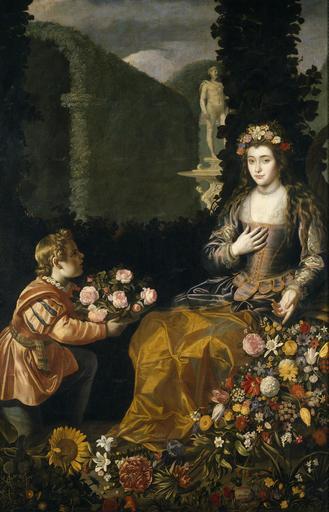 | Keywords: Juan van der Hamne- Offering a Flora, 1627, Prado..jpg Offering to Flora by Juan van der Hamen 1627 oil on canvas Institution Museo del Prado PD-old-100 Juan van der Hamen Baroque gardens People with flowers in art 1620s paintings in the Prado Museum Portraits as Flora Portrait paintings of women with flowers Portrait paintings in gardens Portraits of women with landscape Artworks missing infobox template Kneeling men in art 1627 paintings in Spain | ||||