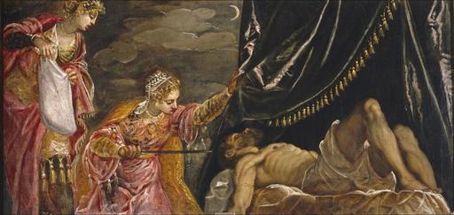 | Keywords: Judit y Holofernes, por Tintoretto.jpg Artwork Creator Tintoretto Este lienzo forma parte de un conjunto integrado por seis pinturas apaisadas Susana y los viejos P00386 Esther ante Asuero P00388 Judith y Holofernes P00389 La reina de Saba ante Salomón P00394 José y la mujer de Putifar P00395 y Moisés salvado de las aguas P00396 con un mismo esquema cromático una acentuación general del dibujo en superficie y un ritmo de formas curvas que enlaza un cuadro con otro; junto con una obra central ovalada Purificación del botín de las vírgenes madianitas P00393 Aunque Velázquez las comprara para Felipe IV como conjunto no debieron formarlo originariamente Las obras apaisadas son muy anteriores a la ovalada y de mayor calidad siendo en esta última mayoritaria la intervención de Domenico Es evidente que estas obras estaban destinadas a un ambiente profano Los temas bíblicos han perdido su carga dramática apenas son un pretexto para mostrar trajes exóticos ceremonial cortesano y carnes desnudas Destacan José y la mujer de Putifar P00395 y Judith y Holofernes P00389 como lo mejor del ciclo sobre todo los desnudos de bello modelado de la mujer de Putifar y Holofernes No hay nada parecido a estos cuadros en la producción restante de Tintoretto y por lo tanto es difícil datarlos con certeza La repetición regular de pequeñas pinceladas caligráficas en las borlas de los vestidos y tocados las hojas de la vegetación formas ensortijadas de los rizos y tocados femeninos crean un ritmo decorativo global que no se repetirá en ninguna de sus obras Texto extractado de Falomir Miguel Tintoretto Museo Nacional del Prado 2007 pp 177 y 258-265 1552 - 1555 Óleo sobre lienzo cm 58 119 Institution Prado Madrid accession number P00389 object history credit line https //www museodelprado es/coleccion/galeria-on-line/galeria-on-line/obra/judith-y-holofernes-1/ Galería online Museo del Prado PD-old-100 Jacopo Tintoretto Paintings by Tintoretto in Prado Museum |