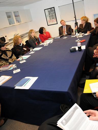 Keywords: judith mc hale judithmchale usembassy montevideo usembassymontevideo uruguay alianza science corner sciencecorner ingenio latu public diplomacy publicdiplomacy indoor El Embajador David D Nelson y la Subsecretaria Judith McHale durante su encuentro con mujeres emprendedoras uruguayas. La Subsecretaria Adjunta de Estado para Asuntos Públicos y Diplomacia Pública, Judith McHale, realizó una visita de dos días en Uruguay. McHale realizó un Tour guidado por Colonia del Sacramento y luego arribó a Montevideo. Su agenda, cargada de actividades, incluyó una reunión con las mujeres emprendedoras uruguayas que participaron el pasado año en la Conferencia Caminos hacia la Prosperidad, una reunión con los Fans de la página de Facebook de la embajada de EEUU en Uruguay, una visita a la Alianza Cultural Uruguay-Estados Unidos, una visita a Ingenio, la incubadora de empresas innovadoras ubicada en el LATU, participación en el Consejo de las Américas, entrevista personal con el Presidente Mujica y el Ministro de Relaciones Exteriores Luis Almagro y finalmente un Tour Guiado por el Teatro Solís. El embajador de Estados Unidos en Uruguay, David Nelson, acompañó en todo momento a la Subsecretaria y a su delegación. [US Embassy Photo by Pablo Castro] El Embajador David D Nelson y la Subsecretaria Judith McHale durante su encuentro con mujeres emprendedoras uruguayas. La Subsecretaria Adjunta de Estado para Asuntos Públicos y Diplomacia Pública, Judith McHale, realizó una visita de dos días en Uruguay. McHale realizó un Tour guidado por Colonia del Sacramento y luego arribó a Montevideo. Su agenda, cargada de actividades, incluyó una reunión con las mujeres emprendedoras uruguayas que participaron el pasado año en la Conferencia Caminos hacia la Prosperidad, una reunión con los Fans de la página de Facebook de la embajada de EEUU en Uruguay, una visita a la Alianza Cultural Uruguay-Estados Unidos, una visita a Ingenio, la incubadora de empresas innovadoras ubicada en el LATU, participación en el Consejo de las Américas, entrevista personal con el Presidente Mujica y el Ministro de Relaciones Exteriores Luis Almagro y finalmente un Tour Guiado por el Teatro Solís. El embajador de Estados Unidos en Uruguay, David Nelson, acompañó en todo momento a la Subsecretaria y a su delegación. [US Embassy Photo by Pablo Castro] |