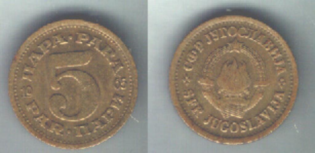 Keywords: Jugoslavia 5 para.JPG Yugoslavia - 5 para - 1965 scan by --Paginazero 18 49 4 Feb 2005 UTC PD-Yugoslavia Coins of Yugoslavia