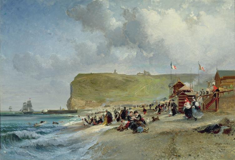 | Keywords: Jules Achille Noël - Crinolines sur la plage, Fecamp (1871).jpg Artwork Creator Jules Noël 1871 cm 74 110 oil on canvas Musée des Terre-Neuvas et de la pêche Fécamp France accession number object history credit line exhibition history JULES NOËL / FÉCAMP / 1871 ~ lower right signature / date 70365 PD-old-100 DEFAULTSORT Noel Jules; Arrival of a Stagecoach at Treport; Musée des Beaux-Arts de Quimper Jules Noël Musée des Terre-Neuvas Landscape paintings of France 1870s landscape paintings People at the beach in art |